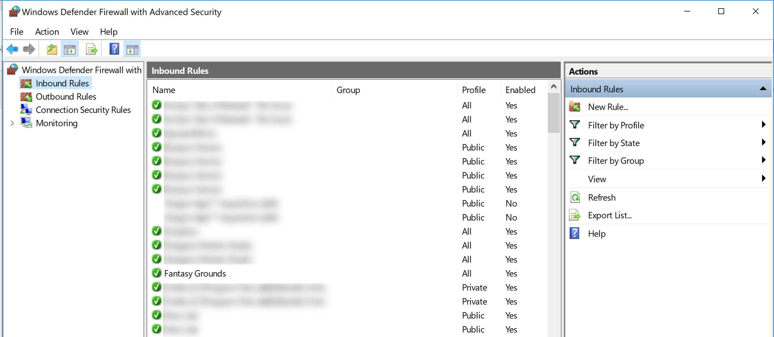> Exception made in Windows Defender Firewall: (see attachment)Does Windows know that "Fantasy Grounds" means port 1802?