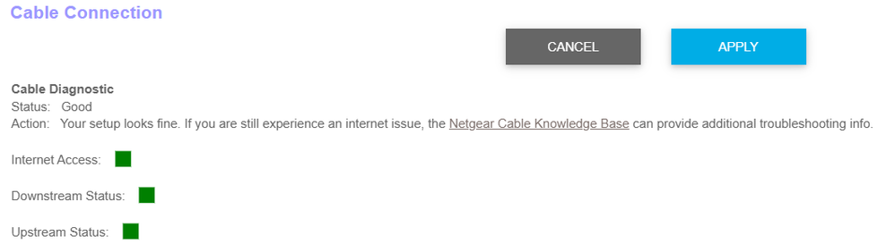 https://kb.netgear.com/30007/How-do-I-obtain-the-cable-connection-information-from-a-NETGEAR-cable-modem-modem-routerHas a power off for 1 minute then back ON with the ISP modem and router and satellite(s) been performed?