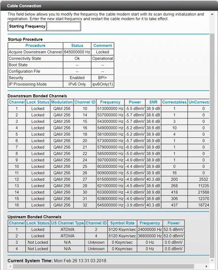 On channels 12-16 you have a ton of uncorrectables could be some type of cable line issue in your home or outside to your connection box I suggest having your ISP send out a tech to check things out.