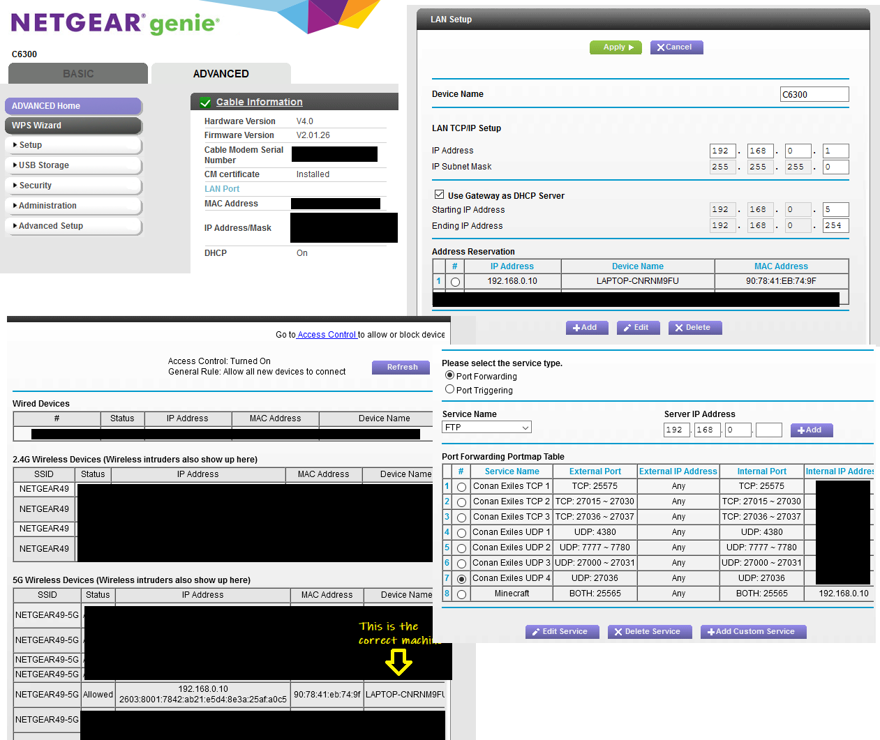 - The Conan Exiles stuff behaves the same - all can connect from LAN, none from outside.