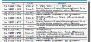 Any Criticals, Errors or Warnings seen in the event logs needs to be reviewed and resolved by the ISP. Indicates a signal issue on the ISP line up to the modem.
