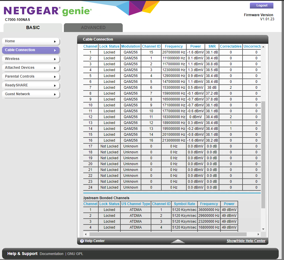 The tech tested for moisture and corrosion. The only issue he found was the ground for the cable line outside wasn't connected, which he fixed. I think this may have caused the problem with the modem itself, but the damage is probably already done. My ISP has already tried everything on their end, so the next step I have is swapping modems to see if it fixes. Upload speed is still bouncing constantly between 1mbps and 20mbps.- plemansGuru - Experienced User