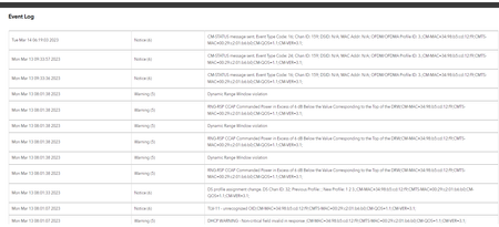 Events logs show a line issue. You need to have the ISP review and resolve any Errors, Criticals and Warnings.