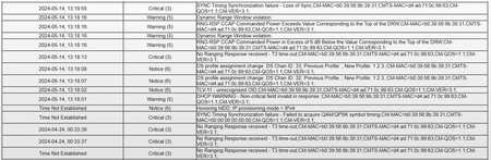 Any Criticals, Errors or Warnings seen in the event logs needs to be reviewed and resolved by the ISP. Indicates a signal issue on the ISP line up to the modem.