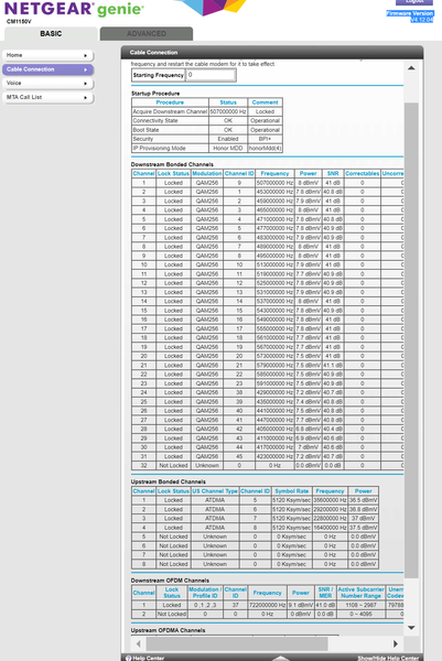 Firmware Version V4.12.04 Our service is 1200 down and we typically get about 950 down, but I don't have a network card that can do higher. Saturday our download speeds dropped to about 95 and e...