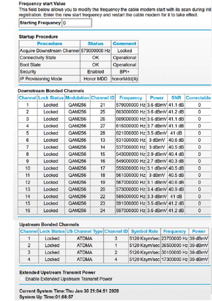 Be sure there are not coax cable line splitters in the between the modem and ISP service box.