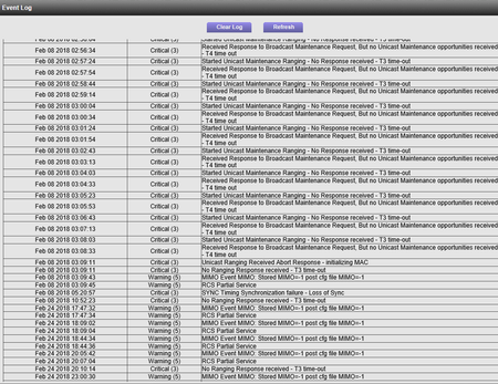 The power on the first couple downstream channels is high it should be between -7 to +7 and the timeouts could be a sign of signal issues. You will want a tech to check the lines or remove any splitters connected to your cable modem and see if it improves.