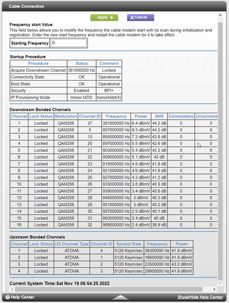 leigh_ wrote:Hi all, I've been having major internet issues for the last month or so, using a Netgear CM500 modem with a TP-Link AX50 on a Cox plan (100 Mbps down / 3 Mbps up). During the day, everything's fine, with no connectivity or speed issues, but from around 6pm - midnight, the internet is unusable: the connection is intermittent and insanely slow (like 1-2 mbps DOWN / .07 mbps UP).My ISP has sent a tech out twice now, but each time, they've found no line or signal issues, and my connection looked fine (at the time). The second guy replaced some old fittings/connections at the box, and said the problem was related to issues with the node in our area, but even with no local outages reported, the problems are obviously still there.Looking for suggestions on what to do next. Did the ISP techs miss something, is my modem defective, or could my ISP be throttling my connection during peak/evening hours? Thanks.Also, I've attached screenshots of my modem connection and event log.