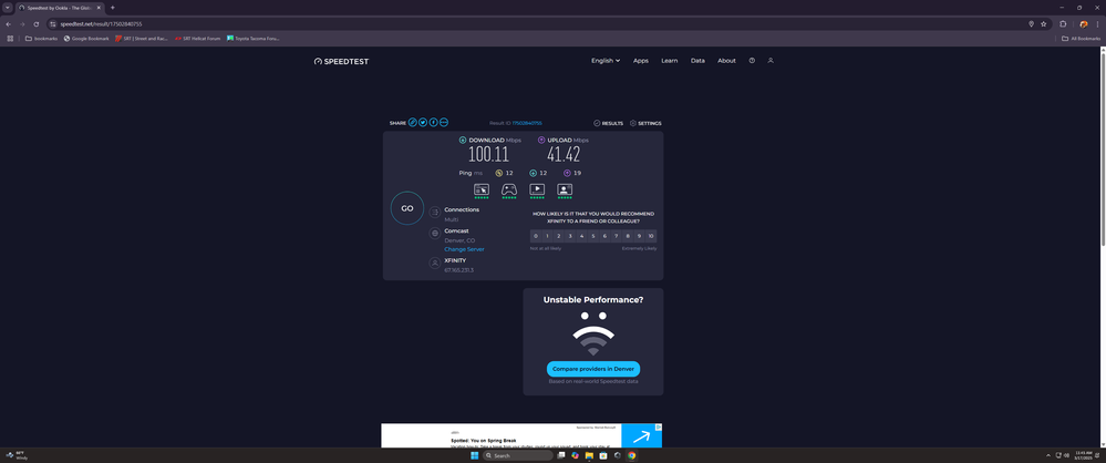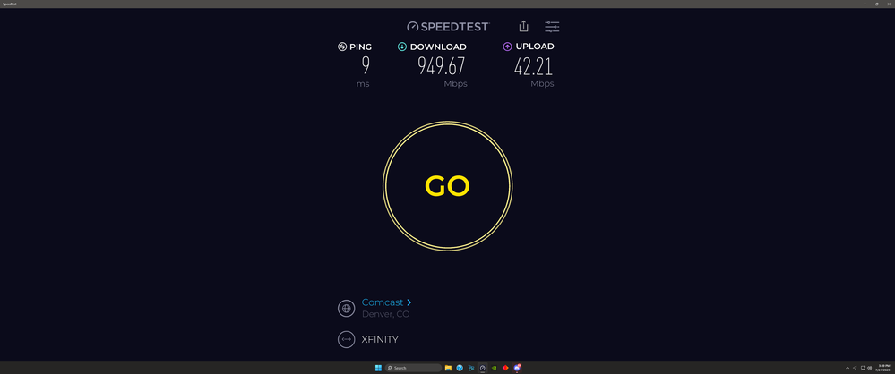 just bought this was getting 950 Mbps with a modem then hooked to a router now varying from 80 -600 then falls flat to around 80 what could cause this ? comcast is my internet service provider . did ...