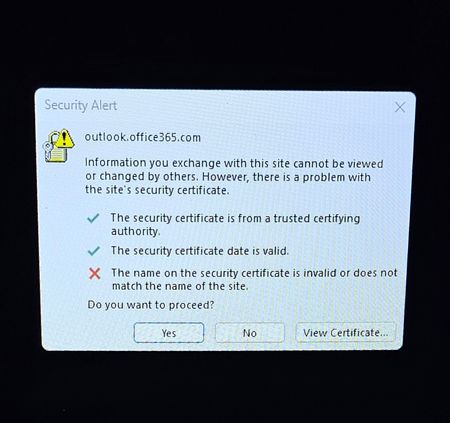 Microsoft Office 365 Security Certificate