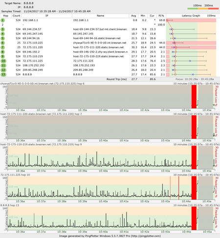 So for 5 months now I get random timeouts that casue me to lose complete connection I think its my isp that is causing it but im not for sure I have ping plotter image i was hoping one of you could g...