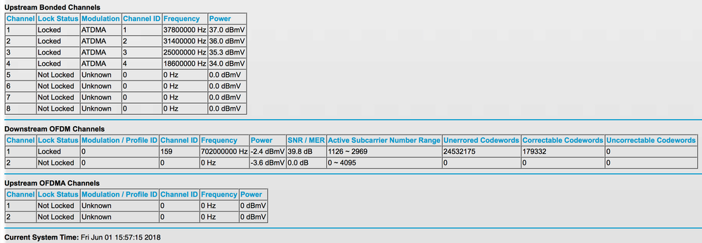 Please could you provide feedback on how to know if the signals I have on my modem (Netgear CM1000) are OK or not, and some education to know what ranges or values should I be looking for, thanks