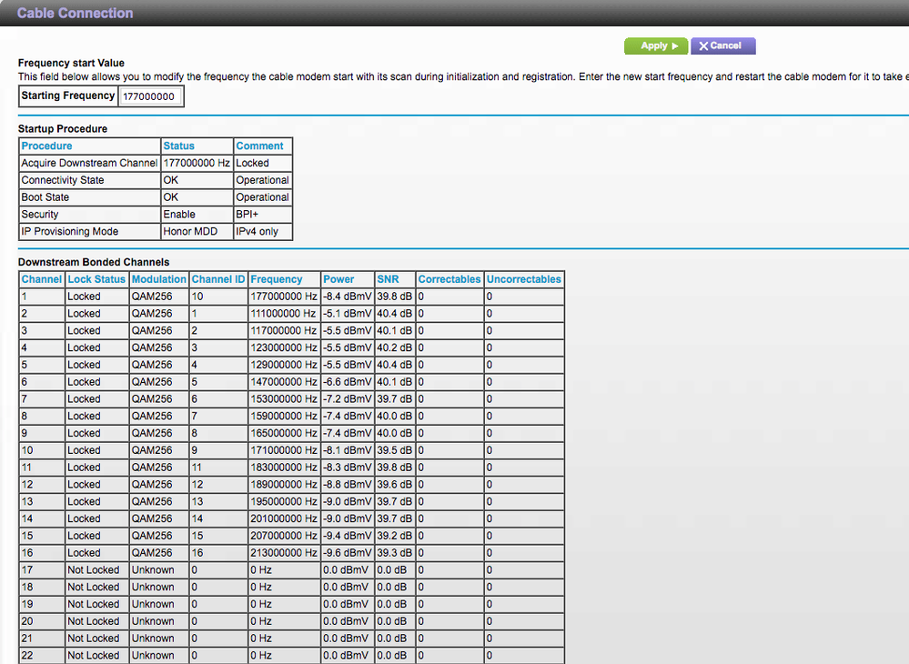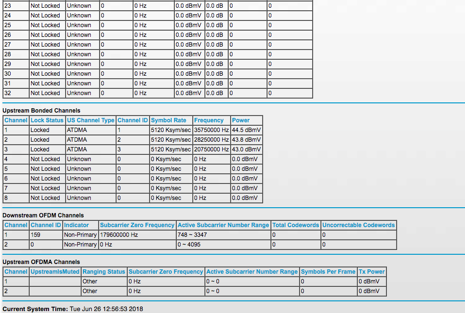 there seems to be only 16 D3.0 SC-QAM channels. This is bit wierd since for D3.1 deployments, we would expect them to put 24 or 32 QAM channels.