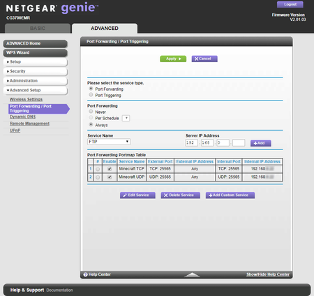 First of all, information. Router model: CG3700EMR. Firmware Version: V2.01.03 The model isn't on this website for some reason, but I found somewhere that the CG3700 is very similar to the CG32...