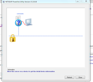 I reset the powerline Av500 to factory setting then installed the powerline utility v2.0.0.8 on my new pc. when I ran the utilty application,it found the device but says "unknown" with the lock icon ...