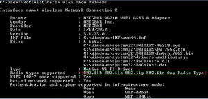 Just purchased Netgear A6210 AC1200 WiFi USB Adapter (USB 3.0). I am using Windows 7 and latest drivers from the website. In command prompt I ran "netsh wlan show drivers" and it is not showing...