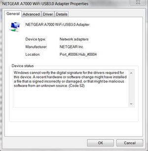 A7000 USB Adaptor - Windows cannot verify the digital signature for the drivers.