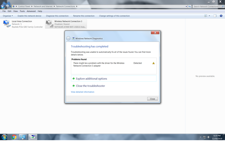 Have you done any troubleshooting in Windows? Does everything look OK (no warning icons) in Device Manager? (Get at that from the "Winkey" menu.)