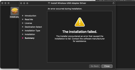 The screenshot on the other hand looks like some Mac based program, probably some Netgear USB WiFi Adapter driver installation. So please tell us more about this USB WiFi Adapter (make and model), what USB Device driver your attempt to install - and then (last but not least) which Mac model, and what kind of a CPU is on board, and which MacOS version.