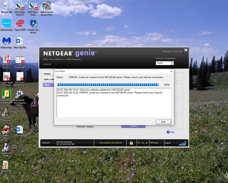 Just installed the AC1200 USB WiFi adapter and when trying to check for software dates thru the Netgear Genie I get the following message