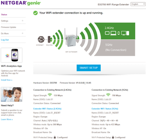 Hello, I've bought the EX3700 and installed it via the URL http://www.mywifiext.com After finishing the installation I noticed the 5GHz shows "No connection" on the 'status' tab, as seen below (...