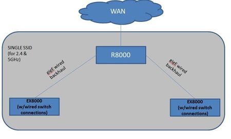 I have an R8000 and would like to set up mesh extension with multiple extenders (see below) with wired backhaul.