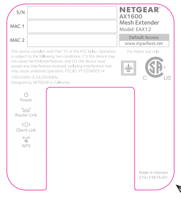 AX1600 4-Stream WiFi 6 Mesh Extender (EAX12) Serial