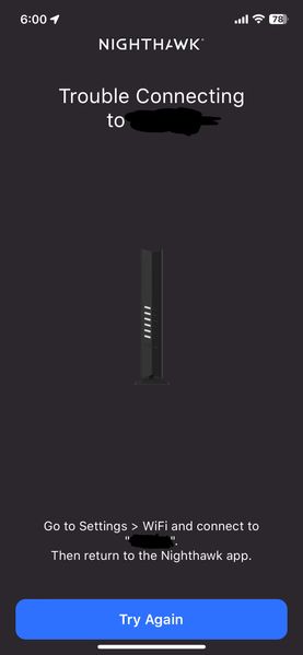 I'm just stuck on this screen. No information about what to do beside Try Again. Restarted this several times and nothing still. Then if I click out of the app, I'm not able to reconnect to ...