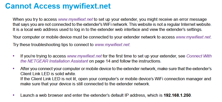 For example: mywifext.com works but then it tells me to connect to mywifiext.local if I'm using One Network. This doesn't work - comes up as "This site can't be reached."