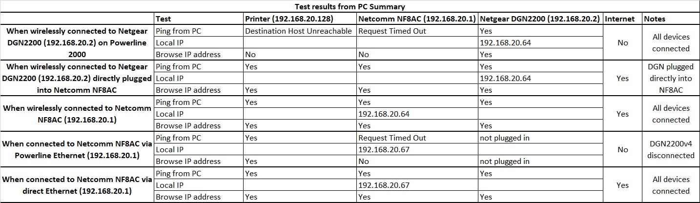 Ok. And the DGN2200v4 is not on the path when you are doing these tests?