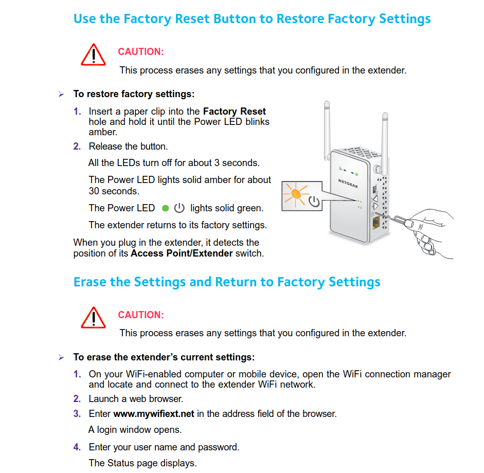 Check the section in the manual Use the Factory Reset Button to Restore Factory Settings