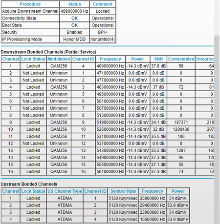 You should be between -7.5 dbmv to 7.5 dbmv. You're way under that. Plus you have a lot of errors in the channels that are locked.