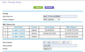 I have a R6700v3 Firmware Version V1.0.4.122_10.0.95. This is a BRAND NEW ROUTER. I'm trying to as a QOS rule for a MAC address. I go in to Advanced» QOS Setup » QoS - Priority Rules. I choose ...