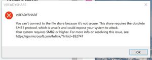 when trying to access the readyshare usb for file sharing, i get thjis message from windows 10. the drive is in the EX7000 extender and both the extender and the router have the latest firmware updd...
