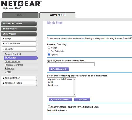 I am trying to block tiktok, as an example on my R7000 router, but for some reason it is not working. I can still browse the website. Please see the attached screenshot. What am I doing wrong? ...