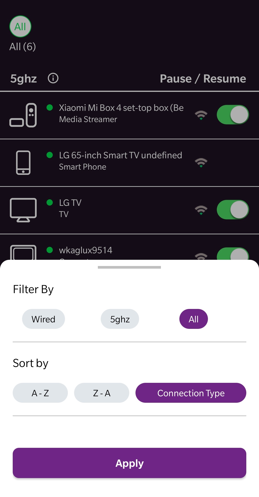 5ghz and wired connections are visible.