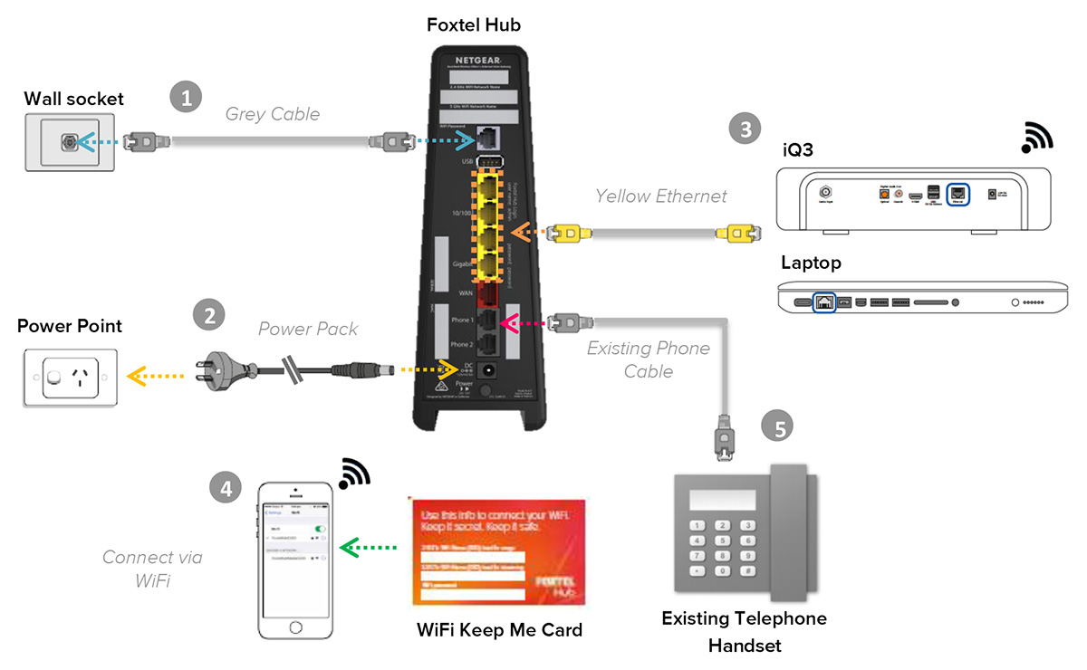 leave your "my Foxtel branded Netgear modem[+router]" where it was, and