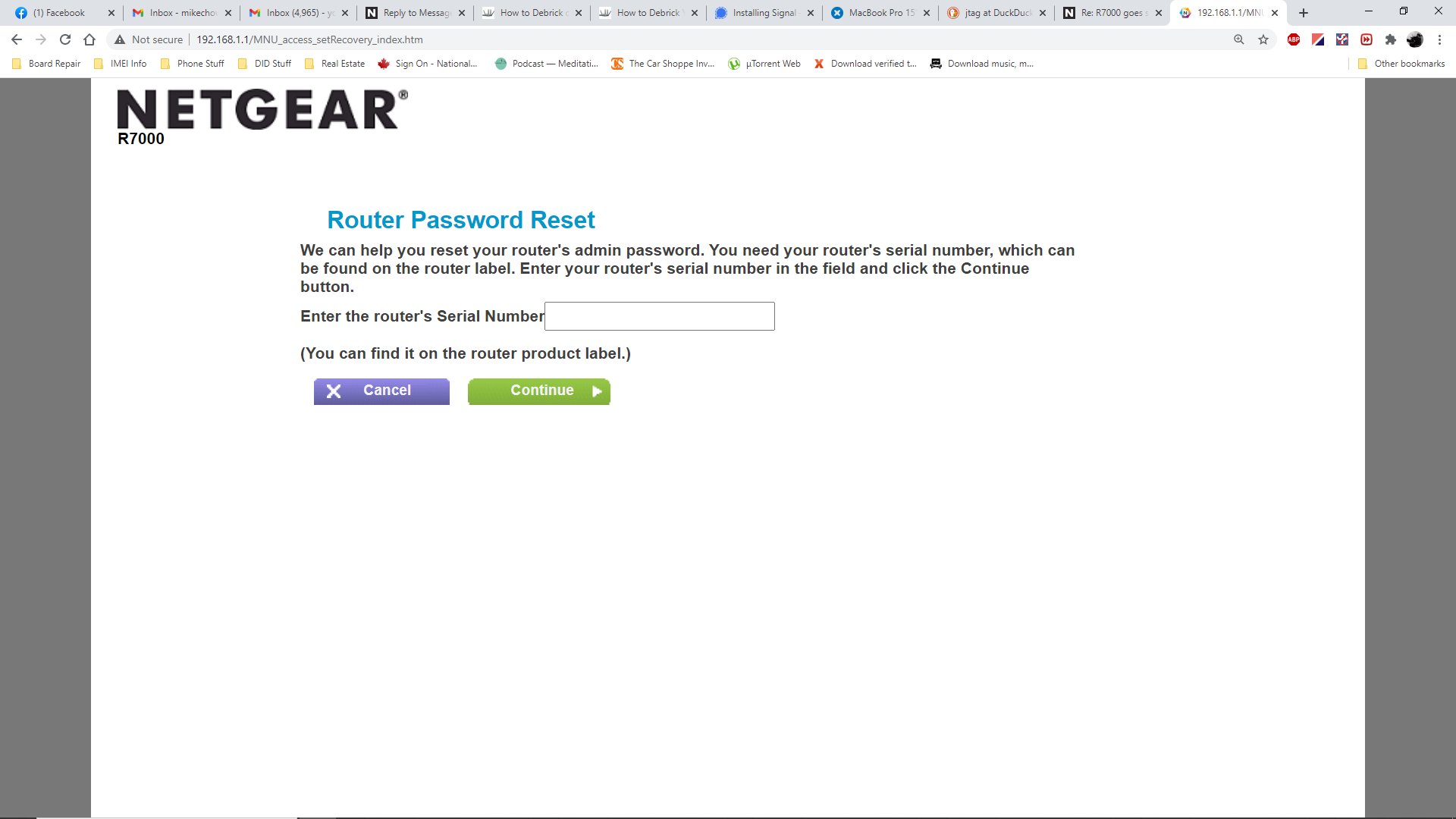Hi all - I stupidly upgraded my firmware using wifi instead of flashing it manually (which I'll do from now on!) since I rebooted post-upgrade, it lets me use my username/password for router security but then directs me to http://192.168.1.1/MNU_access_setRecovery_index.htm as if I was trying to change my router administrator credentials, and asks for the router serial number. It then states "The information you entered does not match what is saved on the router. Please enter it again.". And for the record, yes I am entering the correct serial number - no mixed up l's for 1's etc.