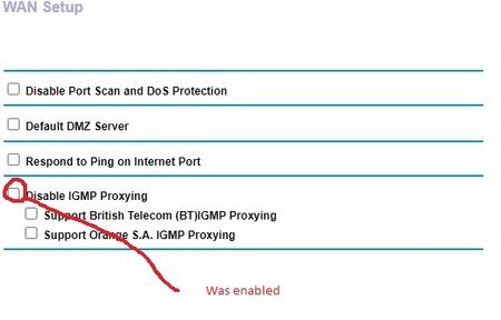 However, using this info I checked the settings on my R8000P and under WAN there is a "Disable IGMP_Proxying" box which was ticked. (So seemingly the IGMP proxy was disabled?!?!)