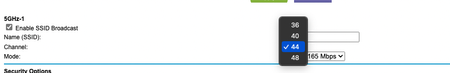 I'm trying to change the 5G channel to something in the range 100-165 but it only lists 36,40,44 and 48. This is for 5G-1. The 5G-2 allows me to do this. Check the screenshots below. Any idea how I c...