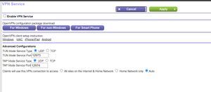 Hello, I am trying to setup a OpenVPN on my Netgear R7450. When I proceed to the advanced page, select VPN service and click on the Enable VPN Service, I get an error stating that the ports are a...