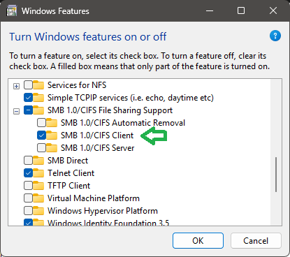 Guest access is another common issue - Windows has tightened up anonymous access. There are some settings to overcome that, but those are a bit harder to make than enabling the SMB 1.0 client.