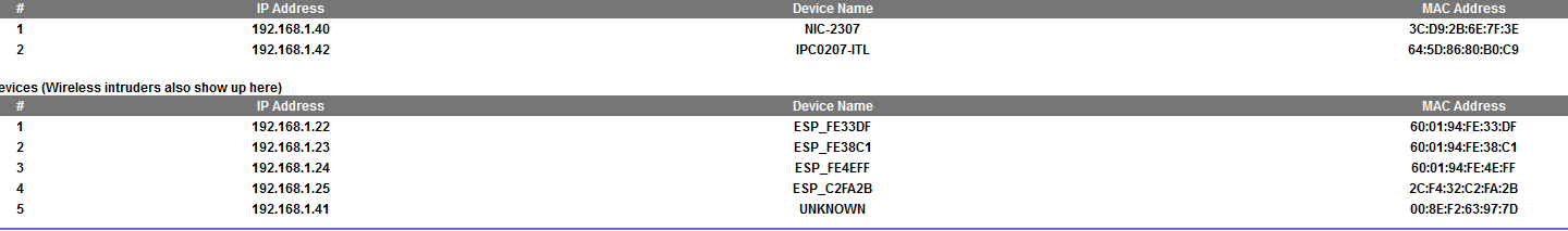 Inoltre dal laptop dell'ufficio, non riesco a connettermi più alla rete Wifi principale, ma solo a quella dell'extender. Il dipositivo appare tra i "Wired" ma in realtà è in wireless....In allegato l'elenco dei devices collegati dopo un reboot del router (ne mancano parecchi all'appello).