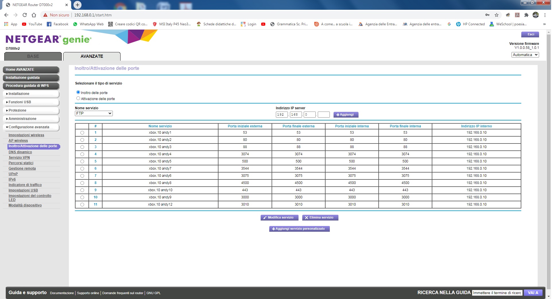 salve Ho un netgear d7000 v2 con tiscali 100mb ultimo firmware istallato V1.0.0.56_1.0.1 lo uso in casa con 2 xbox one s e 1 xbox one x , smart tv, pc, smartphone tutti collegati wi-fi. a me inter...