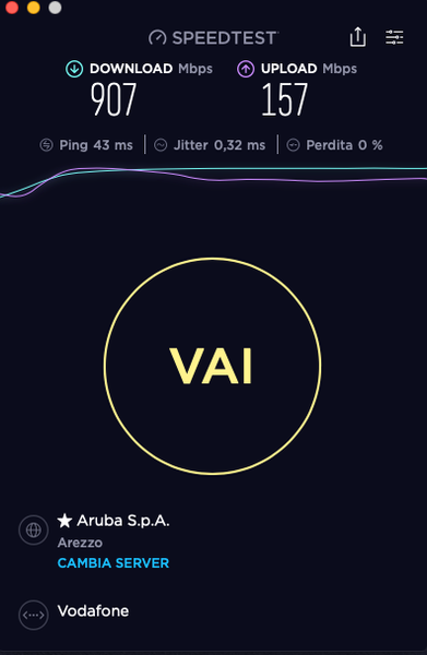 Ho un sistema Orbi RBK installato a casa. Collegato a monte di questo un modem fritz box e un collegamento fibra a 1gb fornito da Vodafone. Il mio MAc è col...