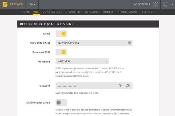 Accedere all’app, cliccare su FASTGate e poi su WiFi