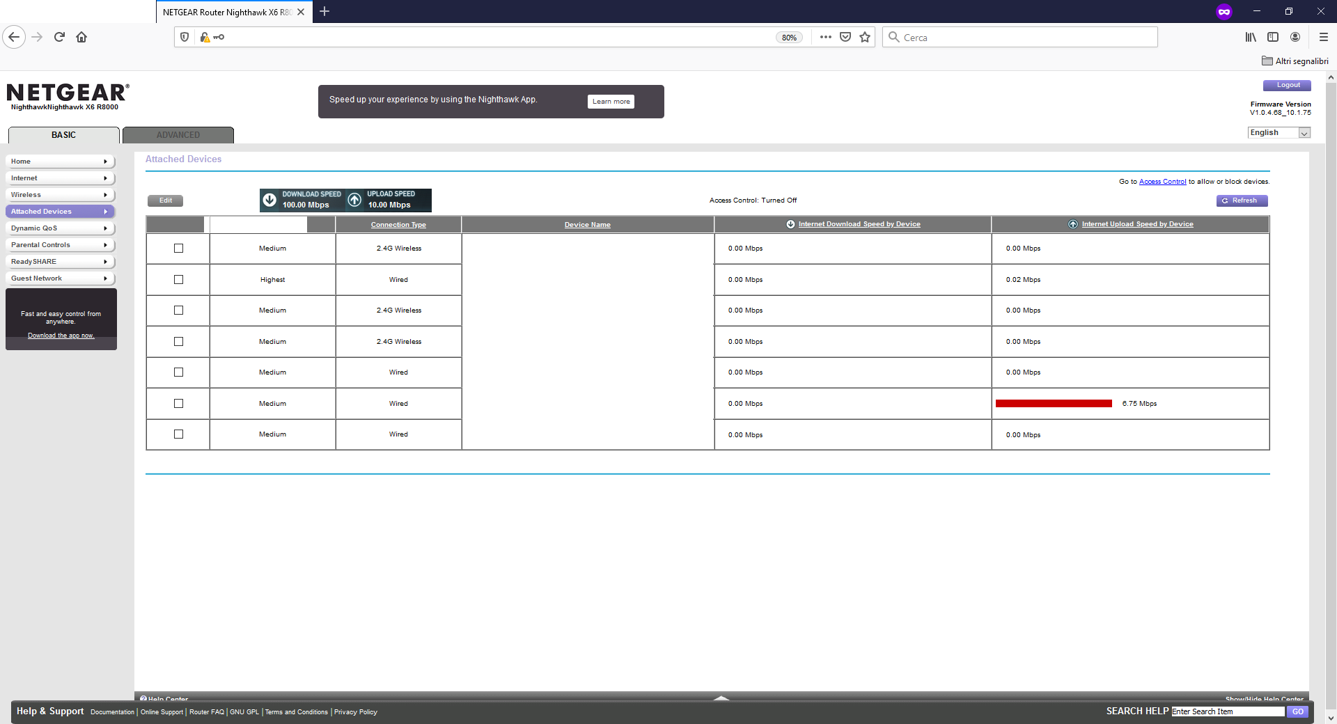 Il problema è che sia in download che in upload il router mi segna la banda rossa nella colonna "internet upload speed by device".