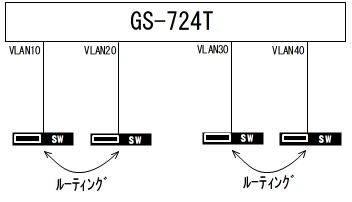 お世話になります。 GS-724Tのルーティングに関してご教授いただけますか。 添付画像のような複数のルーティング設定はどのようにすれば良いのでしょうか。 VLANルーティングを設定すると全VLAN間のルートができてしまうのではと思っています。