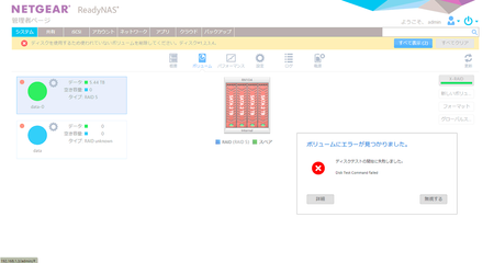 あとは、4本のHDDのうちどれか1本が障害となってボリューム全体に影響を及ぼしている可能性があるので、