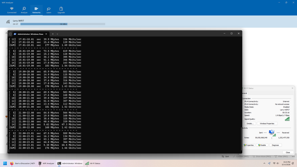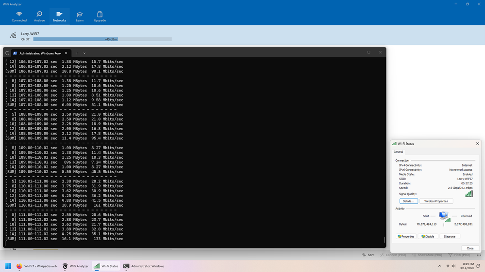 I've checked this repeatedly with spare wifi antennas, moving the PC around, and overzealous usage of iperf 3.2.0 against a wired PC also connected to the BE9300 as well as iperf on an iphone 16.